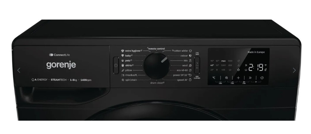 Þvottakerfi: Bómull, Blönduð efni/gerviefni, Ull/handþvottur, ExtraHygiene