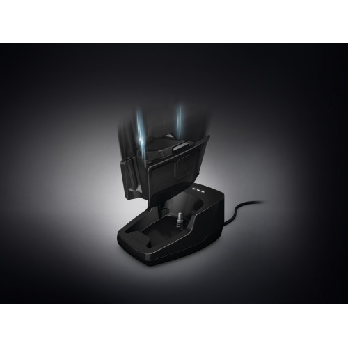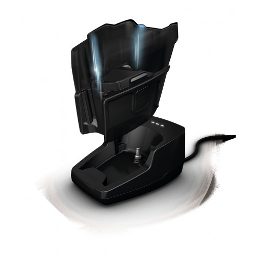 Hleðslutæki fyrir Li-Ion rafhlöðu sem er aðskliin ryksugunni sjálfri.