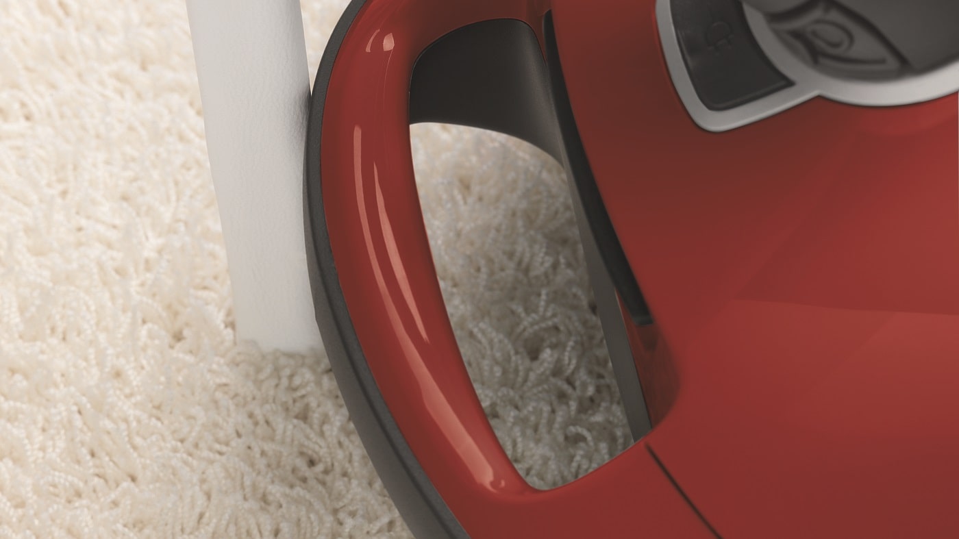 Ryksugan er með DynamicDrive hjólabúnaði sem er einstakur. Mjúk gúmmíhjólin eru bæði slitsterk og endingargóð. Þau geta snúist í 360°, eru fest með stálöxli og eru einnig með dempurum. Ryksugan er þar af leiðandi mjög lipur, hjólabúnaðurinn verndar viðkvæm gólfefni og auk þess er einstaklega hljóðlátt að draga ryksuguna á eftir sér.