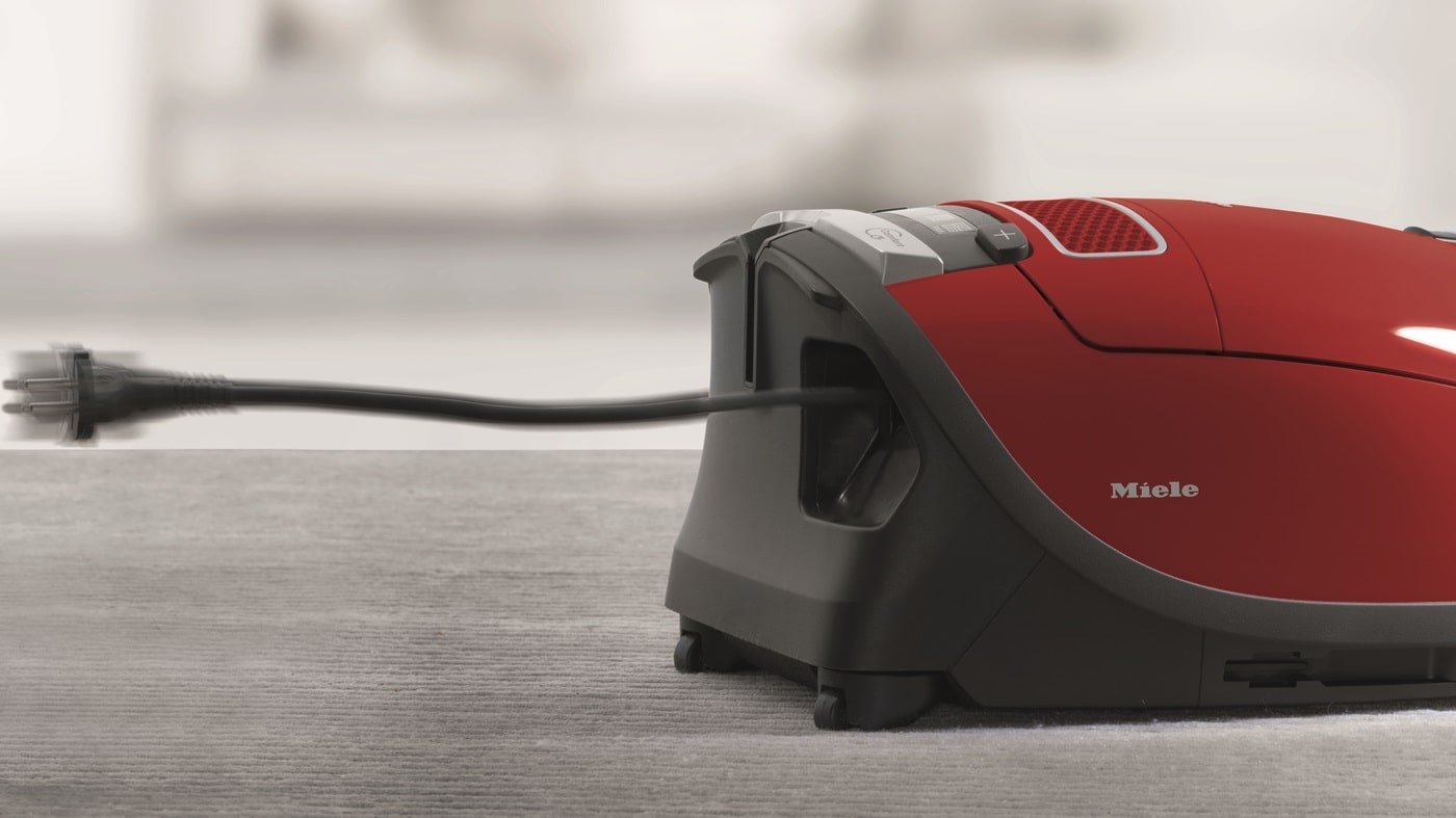 Auðvelt er að rúlla rafmagnssnúru ryksugunnar upp með fótstigsrofa og óþarfi að grúfa yfir henni. Ekki er þörf á að halda inni fótstigsrofanum, heldur er nóg að stíga einu sinni á hann til þess að rúlla allri rafmagnssnúru ryksugunnar upp.