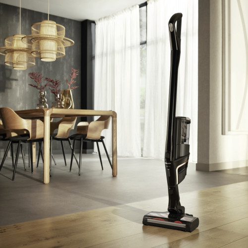 Snúrulaus skaftryksuga frá Miele með öflugri Vortex tækni og auka ryksugubursta sem hentar fullkomlega á dýrahár. Mögulegt er að breyta samsetningu Triflex ryksugunnar eftir þörfum og er hún í raun 3 tæki í 1. Skaftryksugan er jafn öflug og hefðbundnar ryksugur og veitir útskiftanleg Li-ion rafhlaðan allt að 60 mínútna samfelldan gangtíma. HEPA filter síar ofnæmisvaka úr andrúmsloftinu og breiður rafmagnsryksuguhaus með lýsingu tryggir bestu mögulegu sýn.