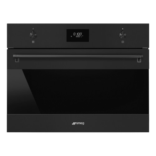 Innbyggður örbylgjuofn með grilli úr Classic línu Smeg. Ofninn er með elektrónískri hitastýringu og halógen lýsingu.