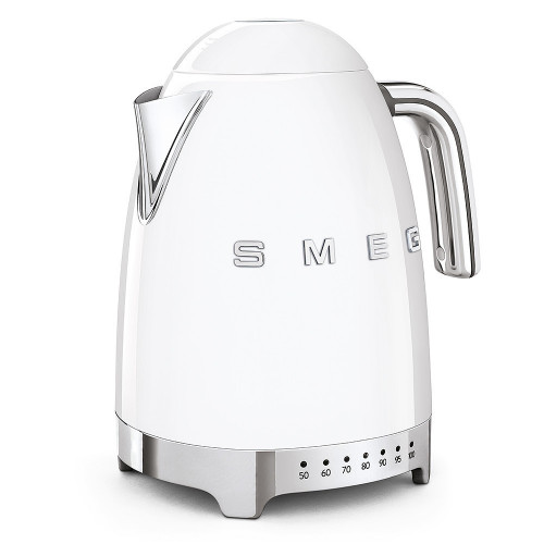 Einstaklega fallegur hraðsuðuketill úr 50's línu SMEG. Mögulegt er að velja á milli 7 mismunandi hitastiga, frá 50°C til 100°C, og getur ketillinn haldið vatninu heitu við valið hitastig í allt að 20 mínútur. Ketillinn tekur 1.7 líta af vatni sem dugar í um það bil 7 bolla og hann slekkur sjálfkrafa á sér þegar völdu hitastigi er náð.,