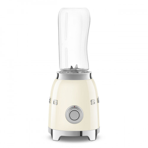 Nettur og praktískur blandari úr 50's línu SMEG með tveimur hraðastillingum. Tvær flöskur með stútum og lokum fylgja með. Fullkominn blandari til að búa til holla smoothie sem er auðvelt að taka með sér úr úr húsi.