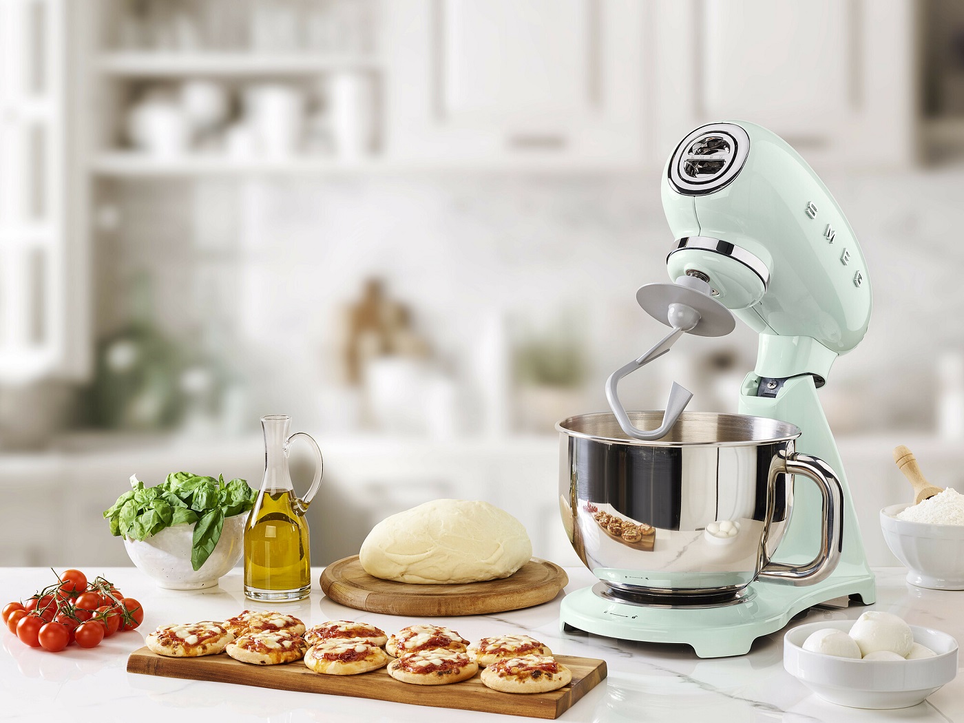 Hvort sem þú er upprennandi kokkur, elskar að baka heima eða einfaldlega kannt að meta fallega hönnun, þá er sterkbyggða Smeg hrærivélin eitthvað fyrr þig. Vélin er heillituð með skínandi enameli, hönnun hennar tók þónokkur ár og eru öll smáatriði þar af leiðandi vandlega úthugsuð. Hrærivélin er áreiðanleg, virkar mjög vel og lítur auk þess frábærlega út. Ergónómísk hönnun og einföld vogarstöng úr stáli gera alla notkun auðvelda og ánægjulega.